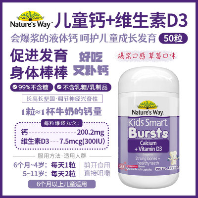 【澳洲仓】Nature's Way佳思敏儿童液体钙+D3胶囊 草莓味 50粒