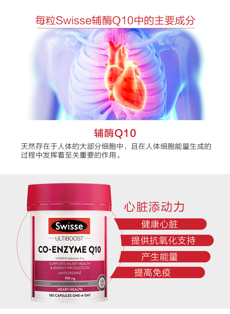 【澳洲仓】(M) Swisse 高含量辅酶Q10软胶囊150mg 安心宝保护心脑血管 180粒