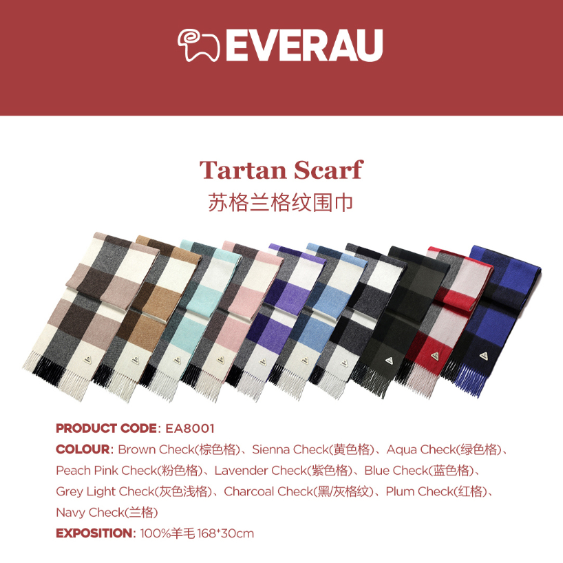 【中国仓】EVERAU 秋冬款苏格兰格纹羊毛围巾 EA8001 多色可选(材质:100%羊毛,尺寸:168cm*30cm)