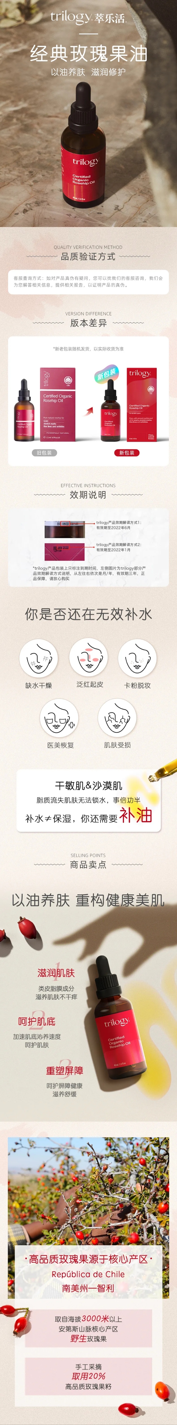 【新西兰仓】Trilogy 趣乐活有机野生玫瑰果油 美白保湿 补水淡痘印 45ml