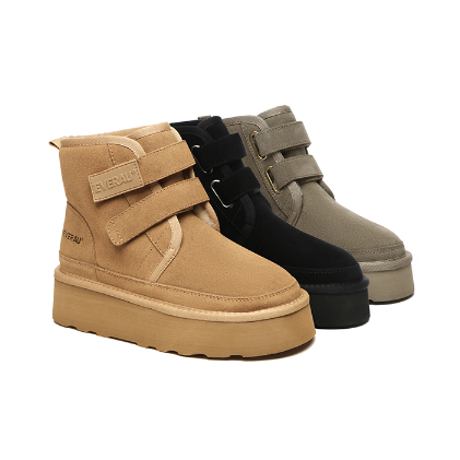 【中国仓】EVERAU 女士秋冬款压花魔术粘贴束带厚底雪地靴 EA3128(35-40码))