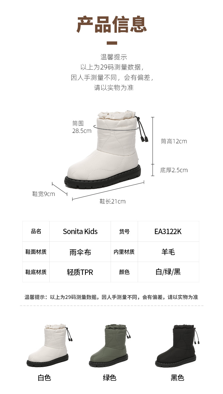 【中国仓】EVERAU kids 秋冬款羽绒布儿童雪地靴 EA3122K