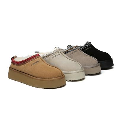【中国仓】EVERAU 女士秋冬款民族风厚底浅口家居鞋毛拖鞋雪地靴 EA2034(35-41码)