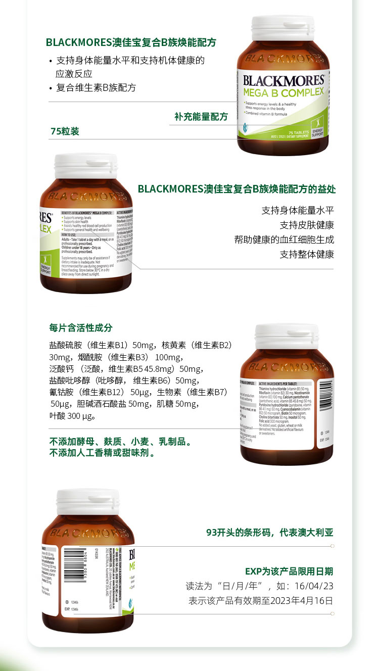 【澳洲仓】 BM澳佳宝Blackmores 复合维生素B族 75粒