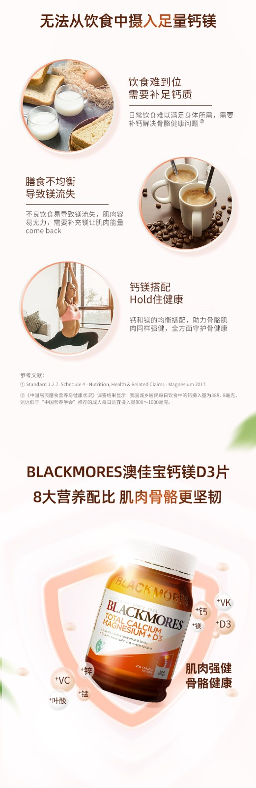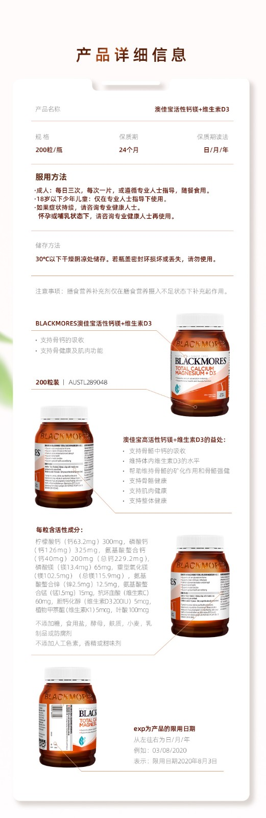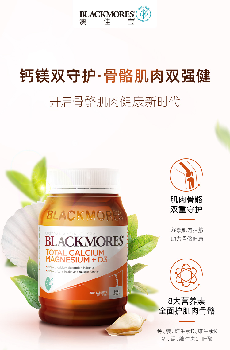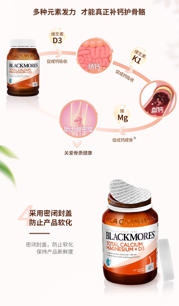 【澳洲仓】BM澳佳宝 Blackmores 活性钙+镁+维生素D3 200粒 守护关节