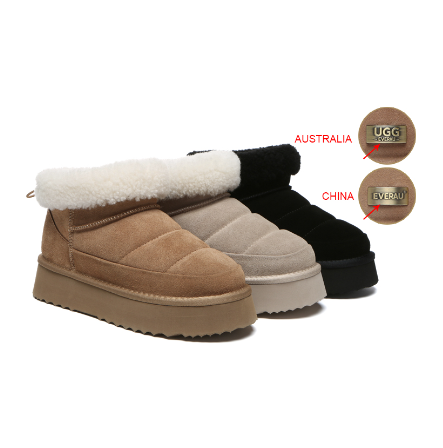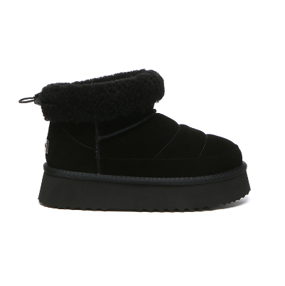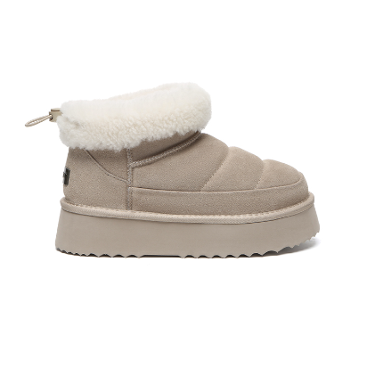 【中国仓】 EVERAU mini 秋冬款奶油甜甜圈翻毛边鞋口松紧绳家居鞋迷你短筒厚底雪地靴 UEA3165(35-41码)