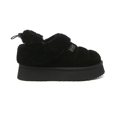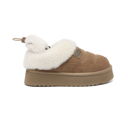 【中国仓】 EVERAU 秋冬款奶油可颂毛绒边翻毛厚底家居鞋后跟可松紧绳拖鞋 UEA2062(35-41码)