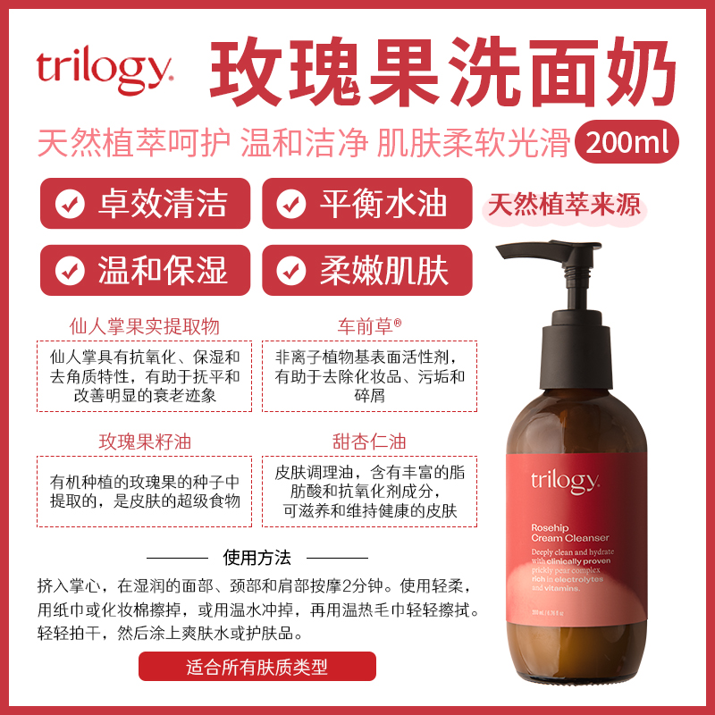 【澳洲仓】Trilogy 玫瑰果洗面奶 温和保湿 平衡水油 200ml