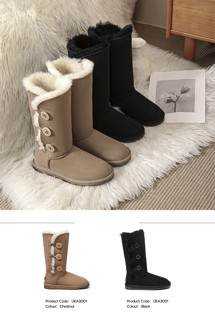 【中国仓】EVERAU 2024AW tall 经典三扣长靴高筒雪地靴 UEA3001(35-44码)