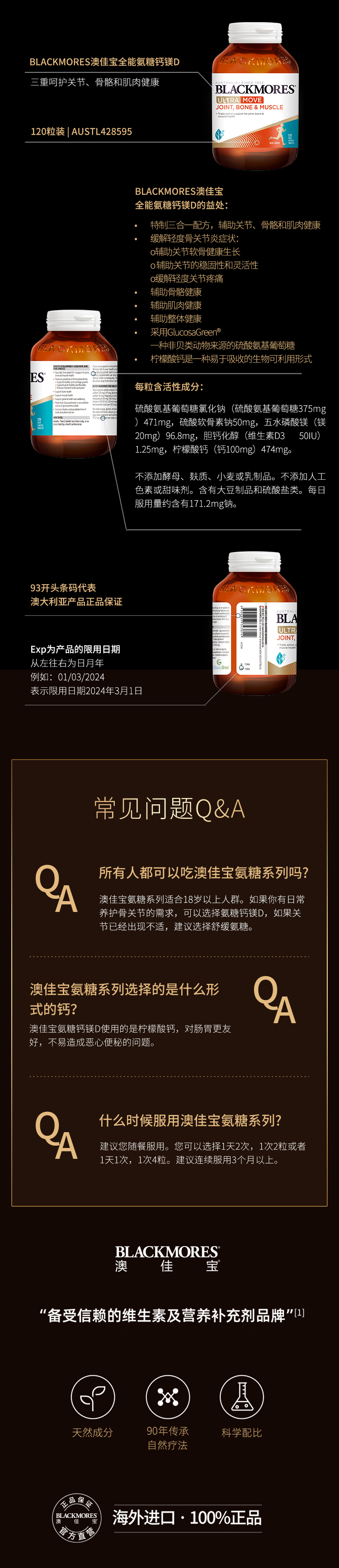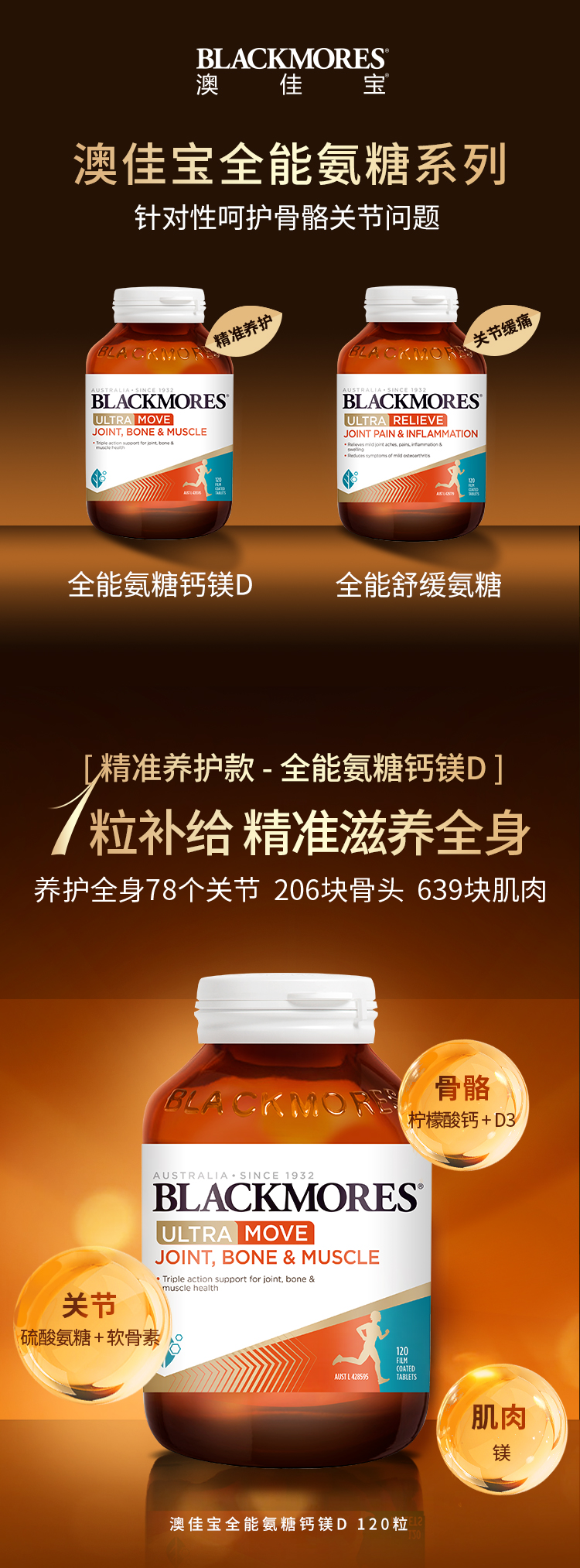 【澳洲仓】blackmores BM全能氨糖钙镁D 120片(MOVE日常关节保养)