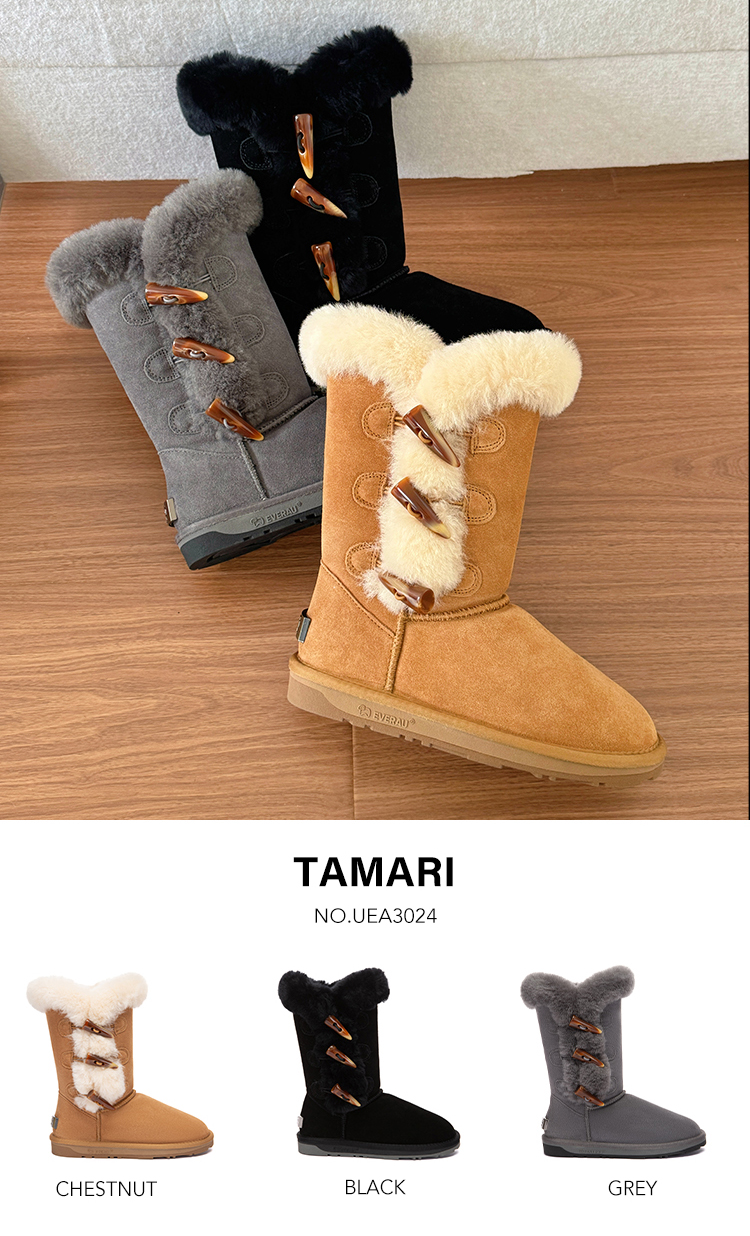 【中国仓】EVERAU tall 女士秋冬款时尚塔美瑞牛角扣高筒雪地靴 UEA3024(35-41码)