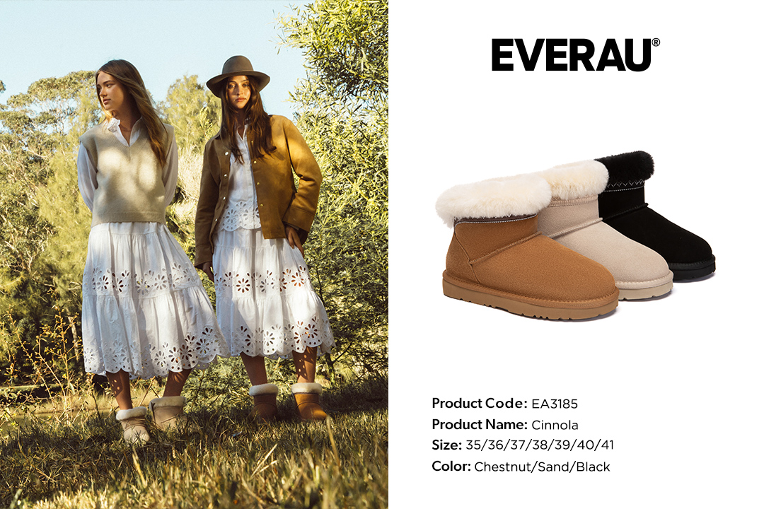 【中国仓】EVERAU mini 女士秋冬款肉桂吐司时尚迷你低筒雪地靴 EA3185(35-41码)