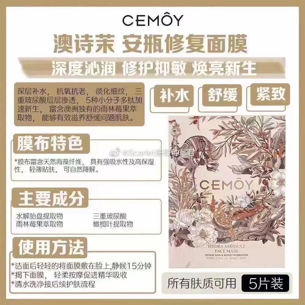 【澳洲仓】CEMOY 澳诗茉 安瓶海藻修复面膜 140ml(28ml*5片)sw