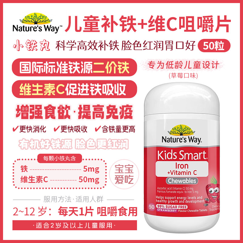 【澳洲仓】【融化不赔】Nature's Way NW 佳思敏儿童补铁维生素C咀嚼片 50粒